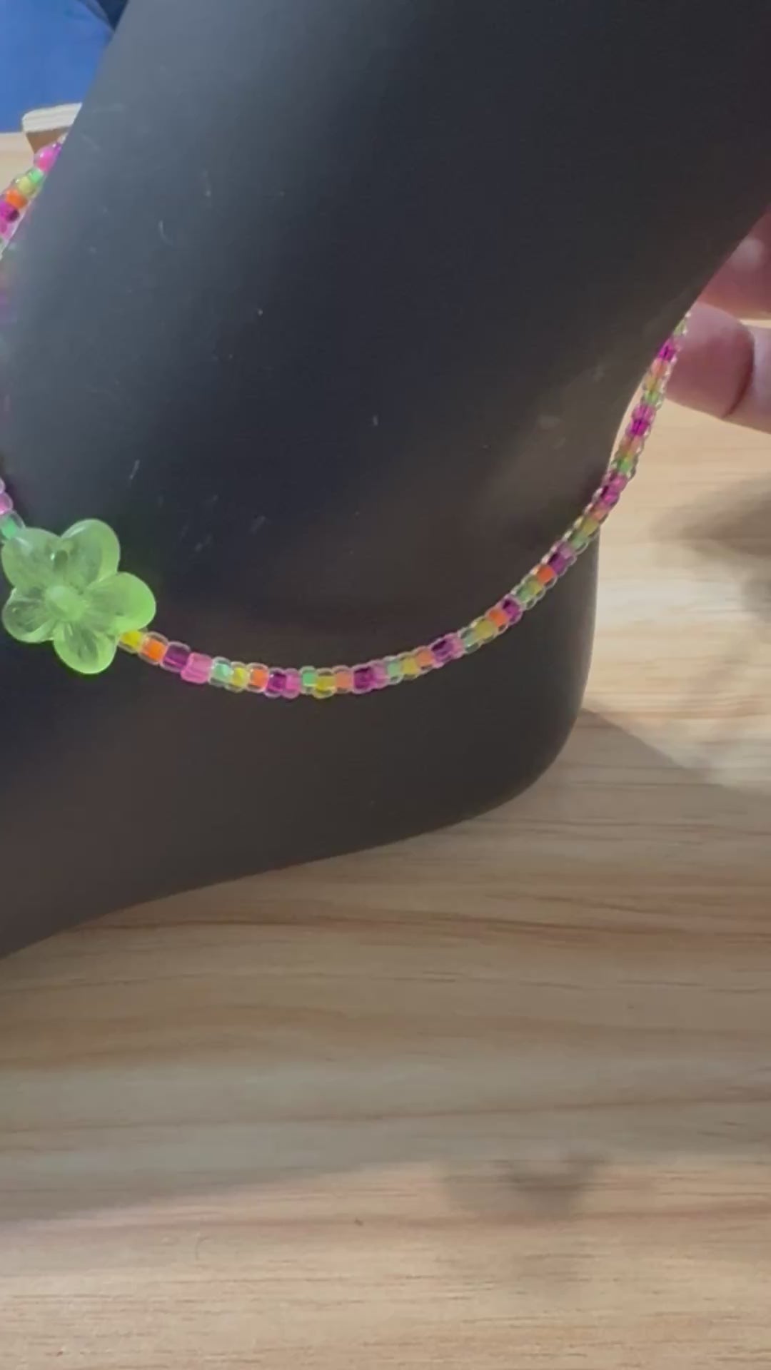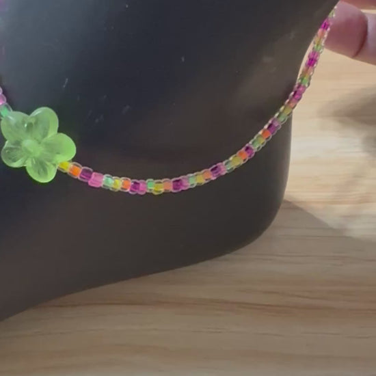 Green Flower and Neon Pink Mix Anklet
