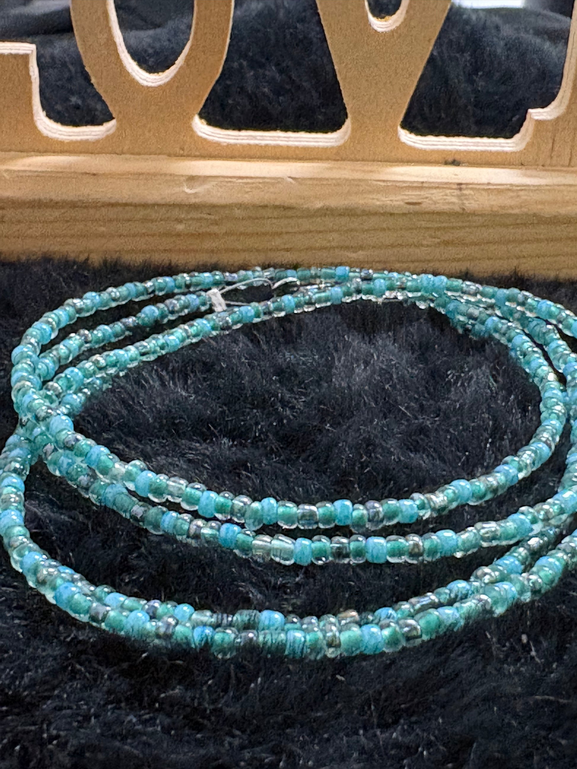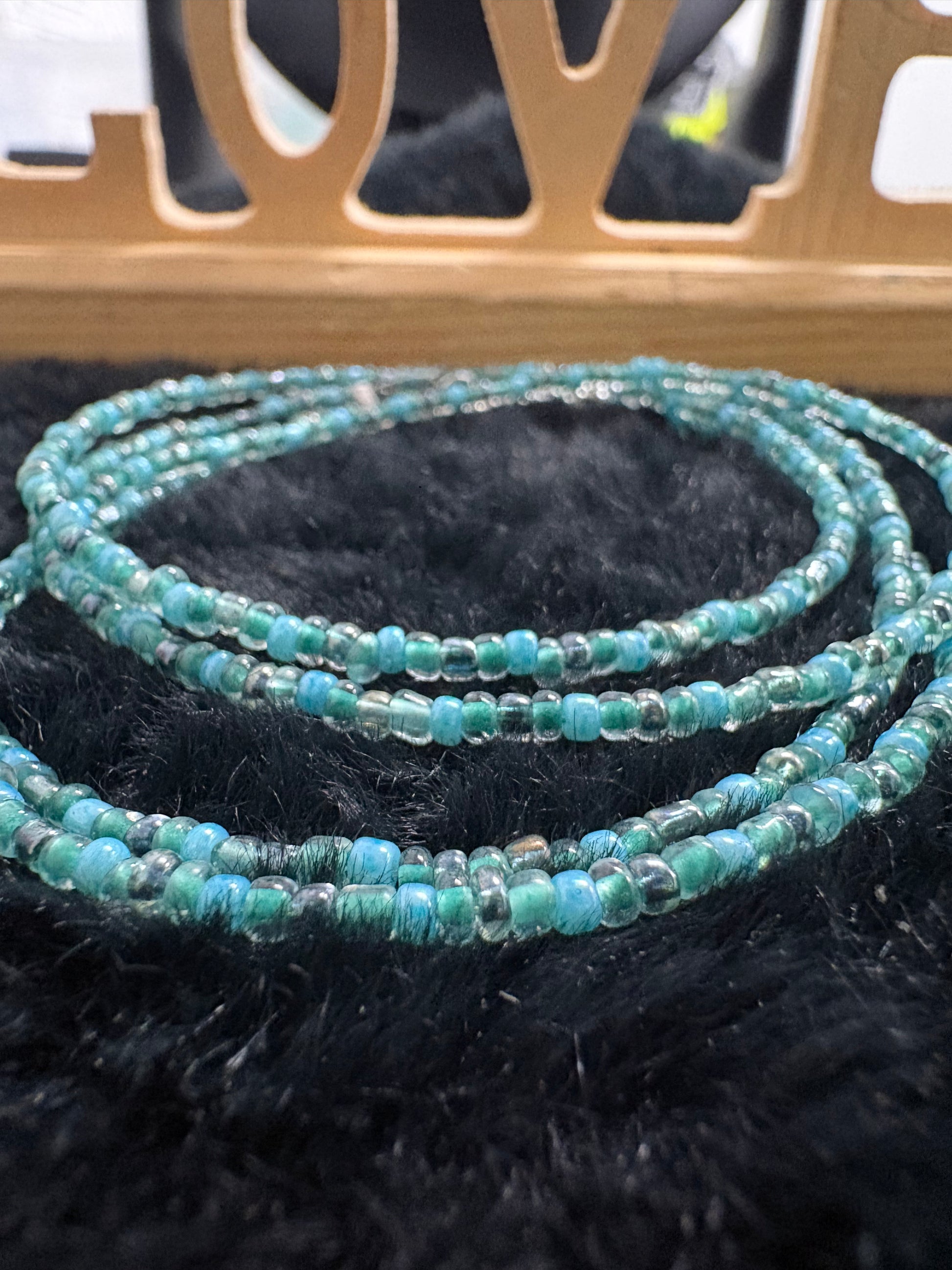 These gorgeous waist beads are attached using a clasp. They are available up to 40 inches. One of one.